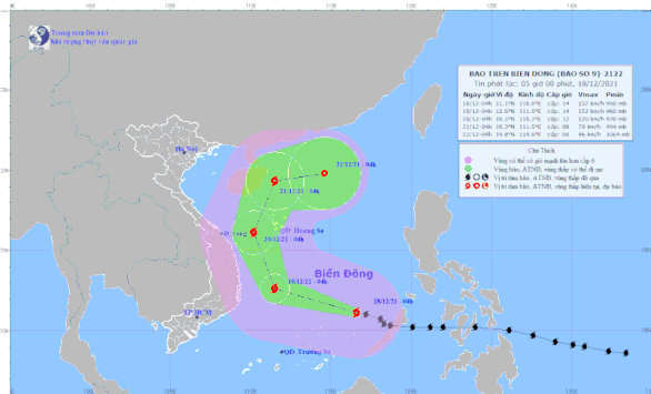 Lúc 4h sáng nay 18-12, vị trí tâm bão cách đảo Song Tử Tây khoảng 250km về phía Đông Đông Nam. Sức gió mạnh nhất vùng gần tâm bão mạnh cấp 14 (150-165km/giờ), giật cấp 17.