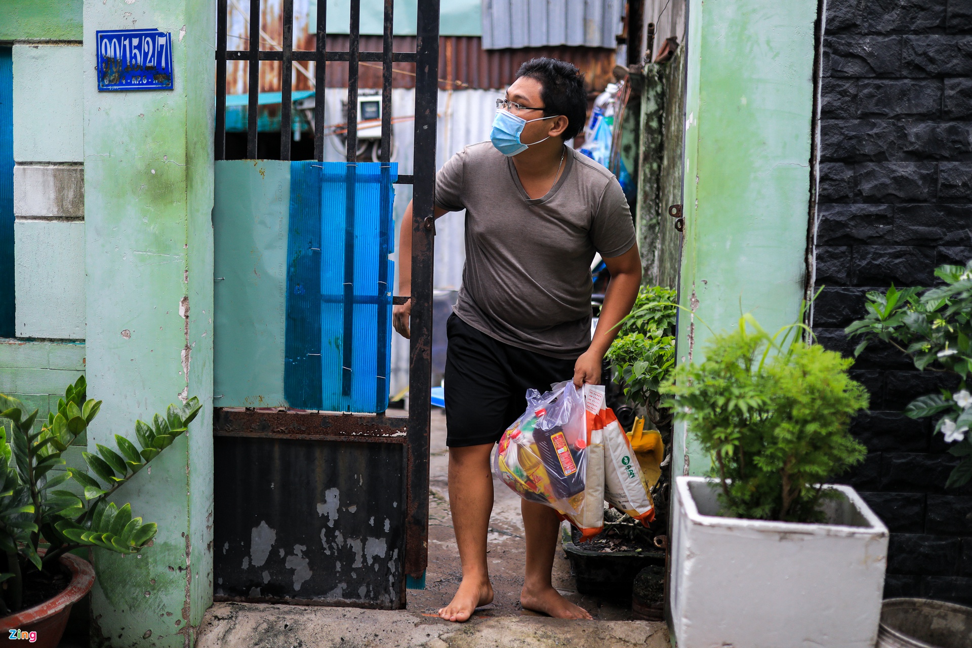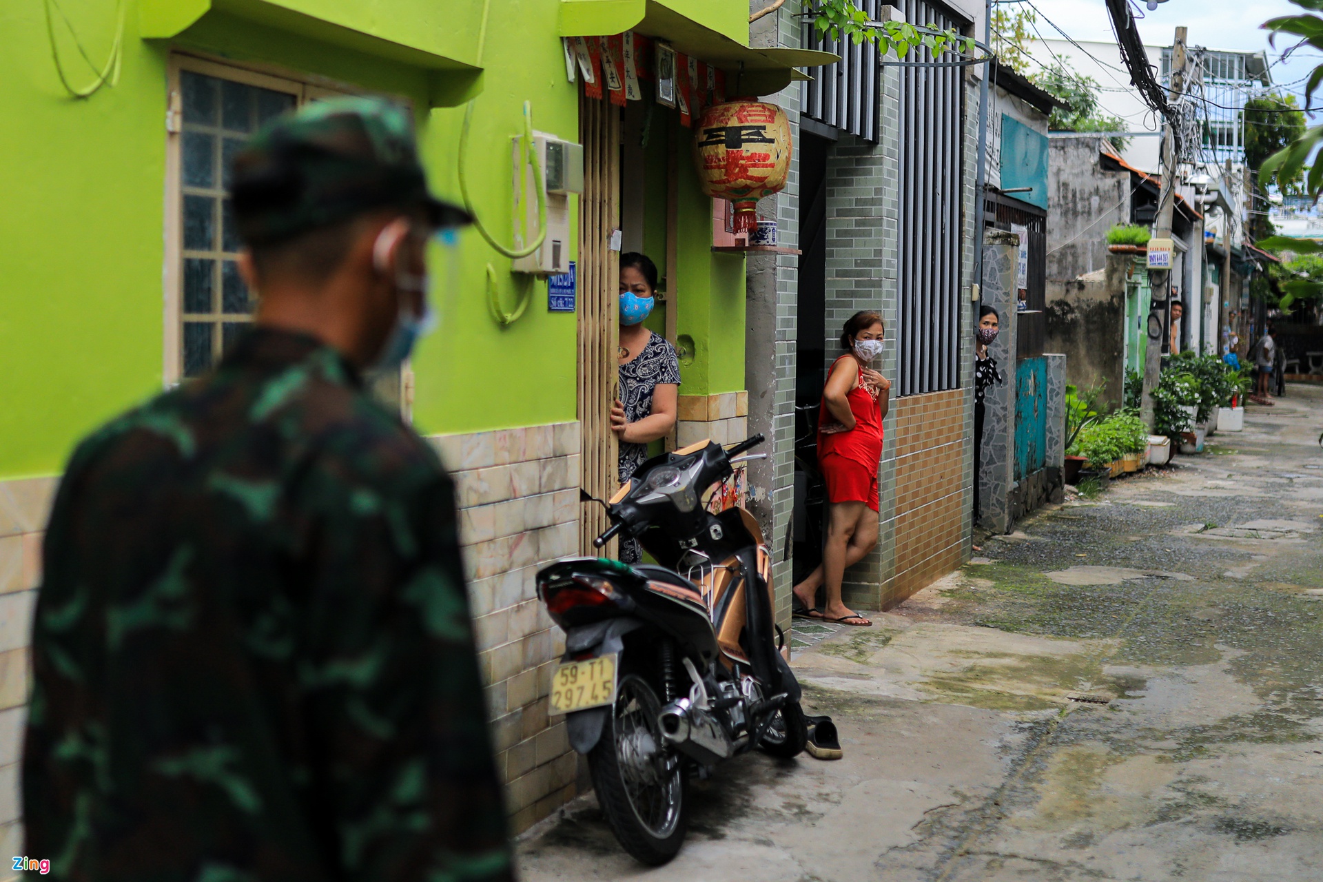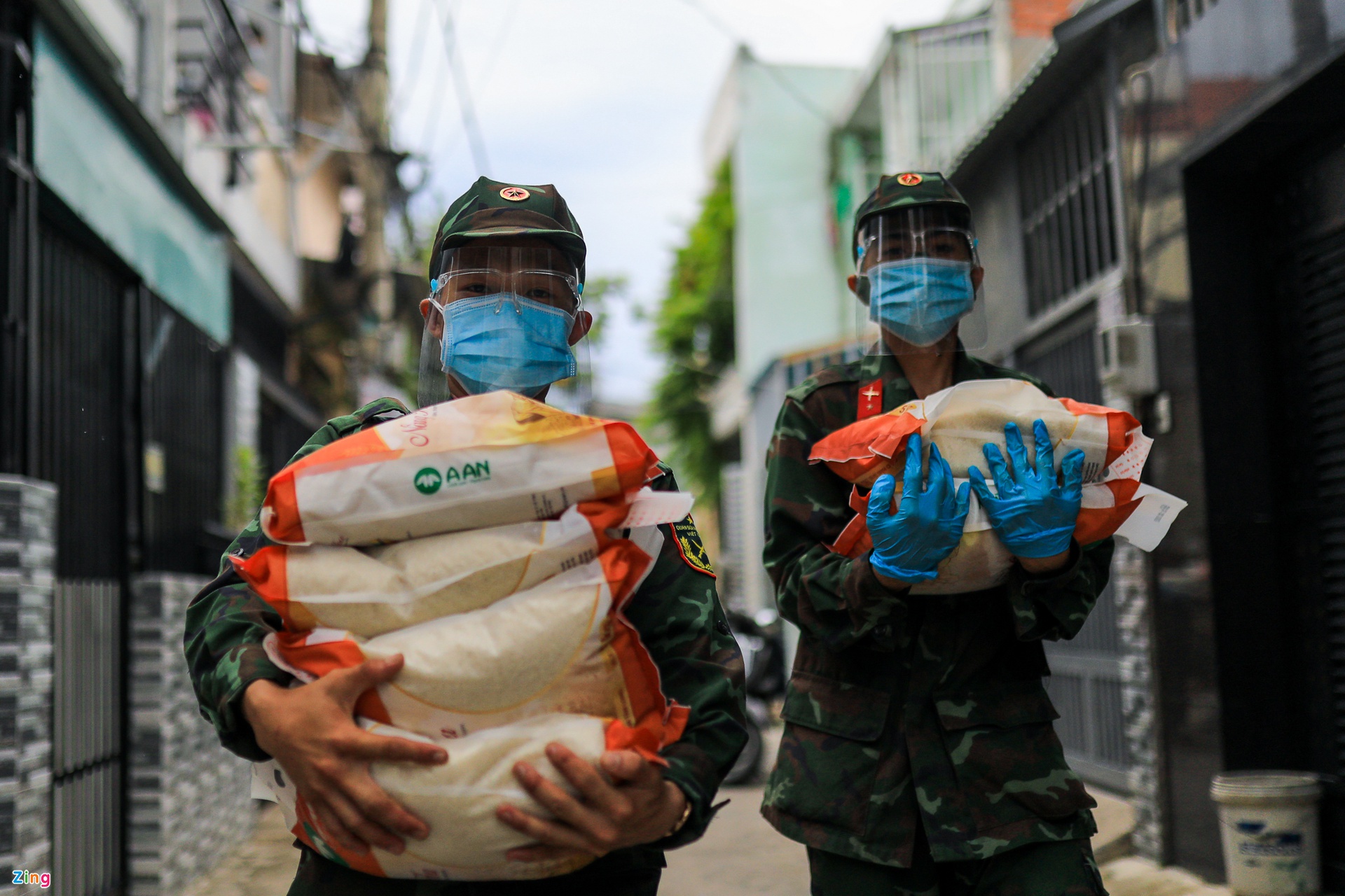 Do các con hẻm nhỏ ôtô không vào được nên bộ đội phải chia nhỏ các phần quà, giao đến từng căn nhà, dãy trọ.