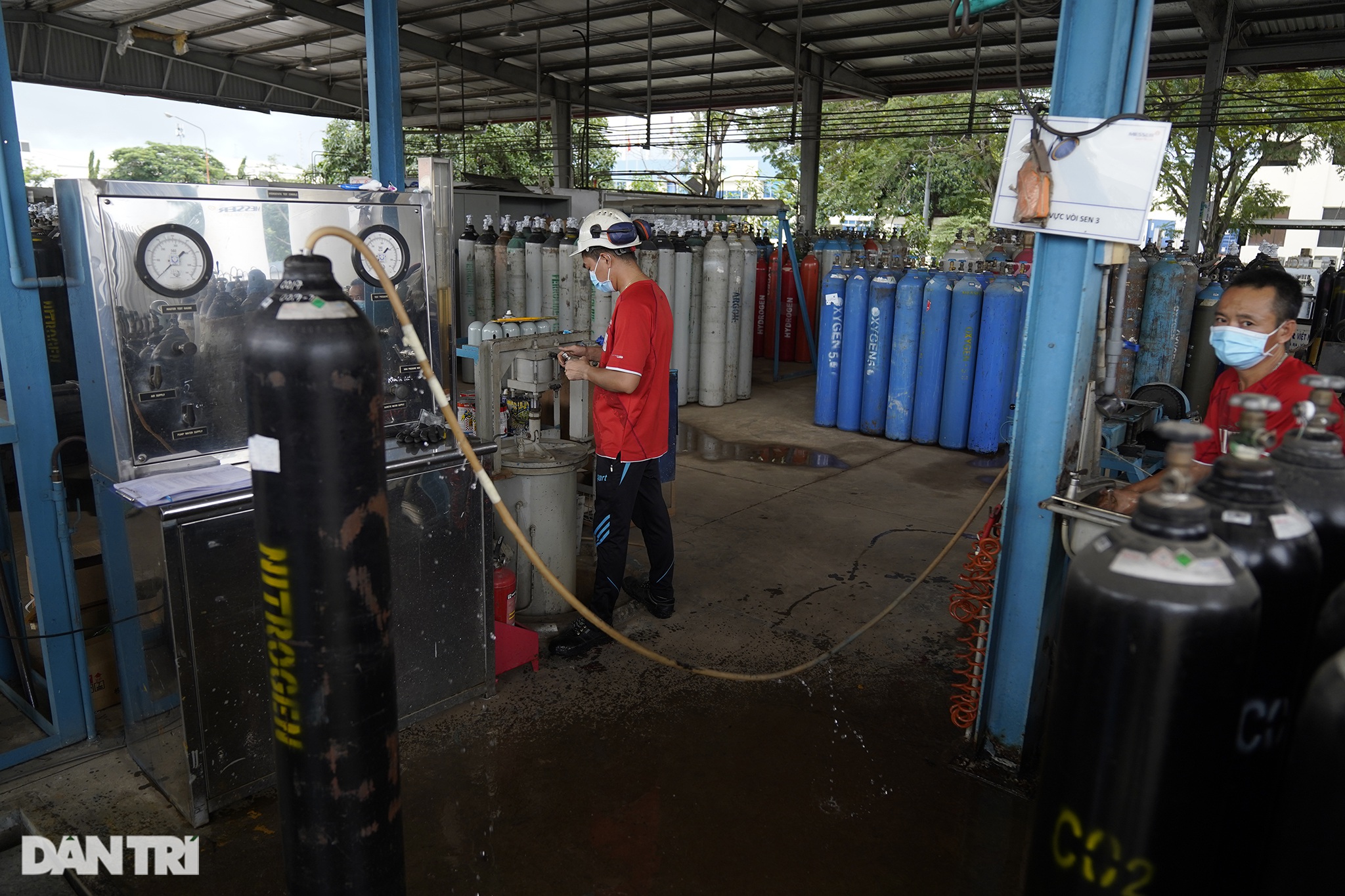 Xưởng sang chiết khí oxy y tế ở Bình Dương có công suất 800 bình/ngày, khả năng đáp ứng tối đa hơn 2.000 bình/ngày cung cấp cho các bệnh viện, trung tâm điều trị Covid-19 ở TPHCM và các tỉnh phía Nam.