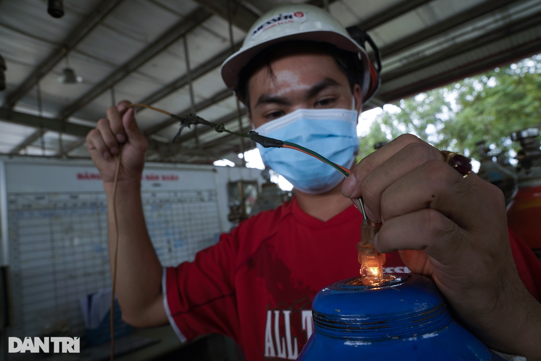 Sau khi kiểm tra khả năng chịu áp vỏ bình, công nhân sẽ sấy khô trong 2 tiếng, sau đó dùng đèn rọi vào bên trong kiểm tra mặt trong thành vỏ.