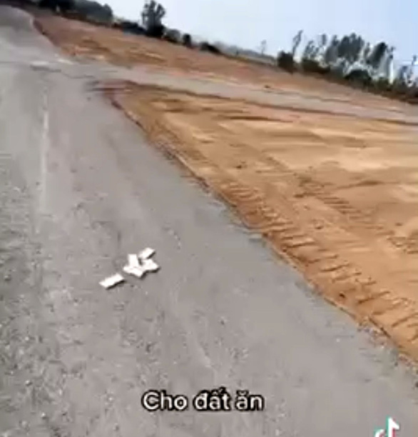 Trước khi “cho đất ăn tiền”, thanh niên này nói ông bà ta có câu muốn giàu nuôi cá, muốn khá nuôi heo, nuôi thì phải cho ăn. Muốn giàu thì mua đất. Nói xong thanh niên này mở túi xách lấy từng cọc tiền có mệnh giá 200.000 đồng rải xuống đất.