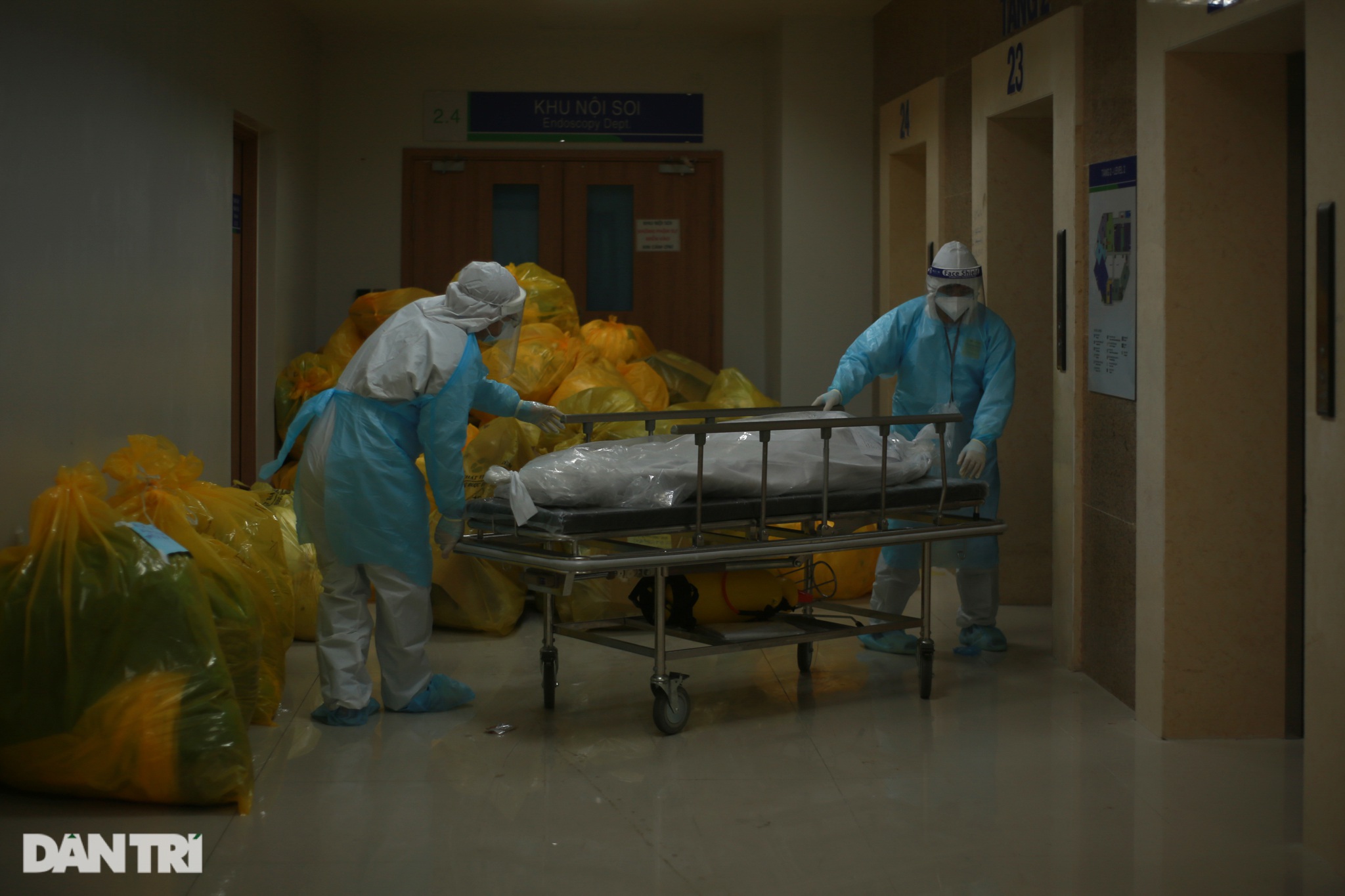 Giữa đêm, không khí bên trong khu hồi sức trở nên trầm xuống, mọi ánh mắt đều hướng về phía chiếc xe đẩy giữa hành lang. Một bệnh nhân 85 tuổi mắc Covid-19 vừa tử vong do bệnh nền nặng. Nhân viên y tế thực hiện quy trình xử lý nghiêm ngặt đối với ca bệnh tử vong rồi chuyển đi làm thủ tục, và báo về cho gia đình.