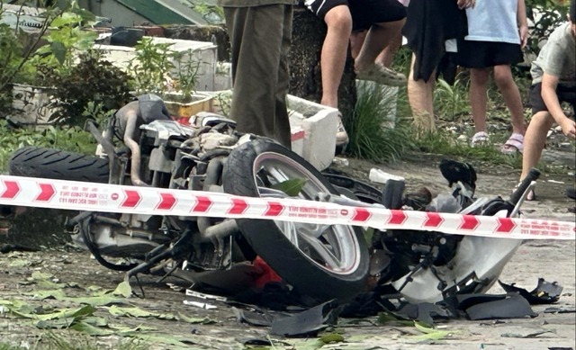 Chiếc xe máy của 2 người đàn ông đến đòi nợ bị hư hỏng sau tiếng nổ