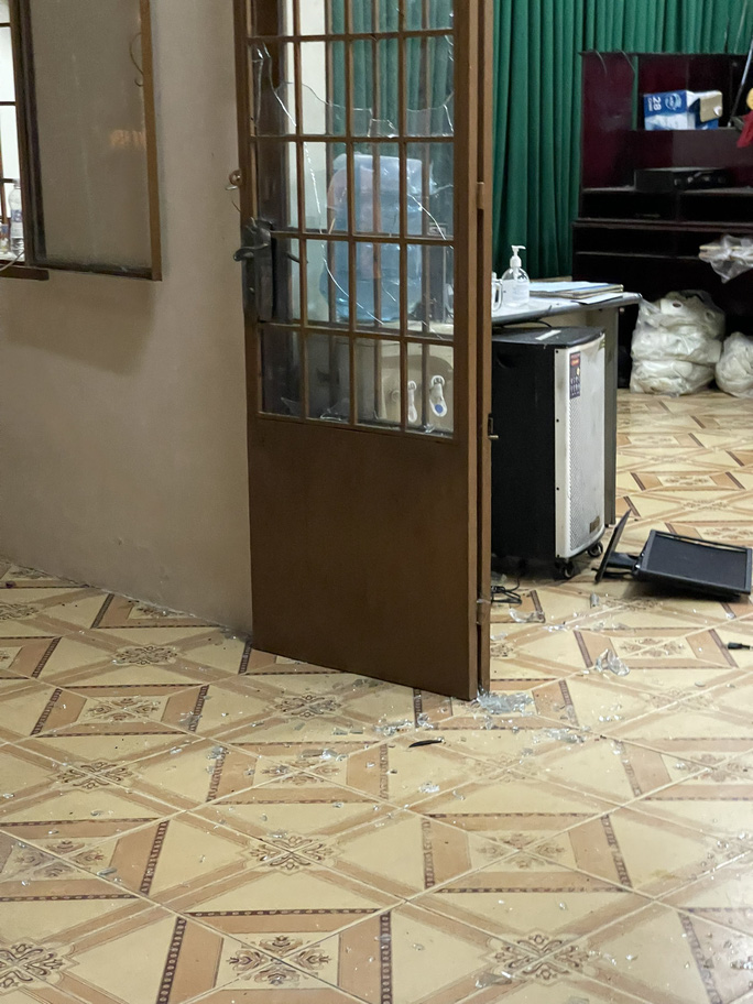 Về lại phòng trọ, người này gọi thêm 4-5 người xông vào trụ sở công an xã Long Tân đập phá. Tại đây, nhóm người hung hãn dùng hung khí (dao) đập phá xe máy, cửa kính và máy tính trong trụ sở công an rồi rời đi.