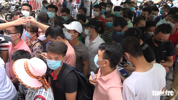 Tại Viện Kiểm định quốc gia vắc xin và sinh phẩm y tế (Bộ Y tế), trong sáng 21-7, hàng trăm người đã chen chúc xếp hàng trước cổng viện để chờ xét nghiệm COVID-19, lượng người tụ tập quá đông làm dấy lên nguy cơ lây nhiễm COVID-19.