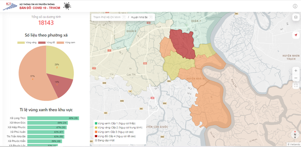 Tối cùng ngày, bản đồ COVID-19 TP.HCM (của Sở Thông tin và truyền thông) hiển thị huyện Nhà Bè đang ở cấp độ 3 (vùng cam, nguy cơ cao). Trước đó, từ ngày bắt đầu nới lỏng giãn cách xã hội (1-10) đến ngày 6-11, huyện này ở cấp độ 2 (vùng vàng, nguy cơ trung bình).