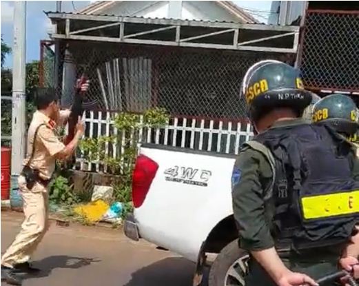 Thấy lực lượng công an bao vây, y dùng bình gas, bom xăng uy hiếp cho đốt cháy ngôi nhà và đã bắn nhiều phát vào lực lượng công an.