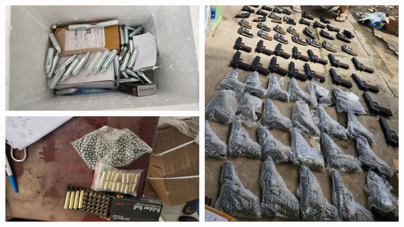 Khi khám xét, lực lượng chức năng đã thu giữ 84 khẩu súng các loại (có 11 khẩu súng là vũ khí quân dụng, 14 khẩu súng là công cụ hỗ trợ), hơn 300 viên đạn các loại, 365 ống kim loại chứa CO2, 1 roi điện; 1 máy tiện chuyên dụng và một số thiết bị, máy móc phục vụ việc chế tạo, cải tạo các loại súng bắn đạn bi, đạn thể thao thành súng có tính năng tương tự vũ khí quân dụng.