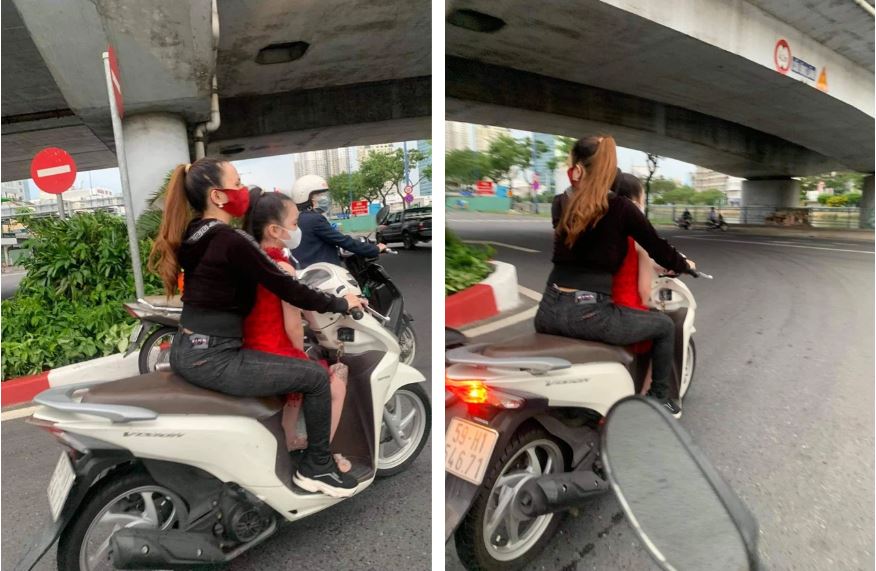 Người phụ nữ này vẫn không đeo khẩu trang và dắt theo bé gái đi trên phố giữa lúc TP.HCM đang thực hiện nghiêm ngặt việc giãn cách xã hội.