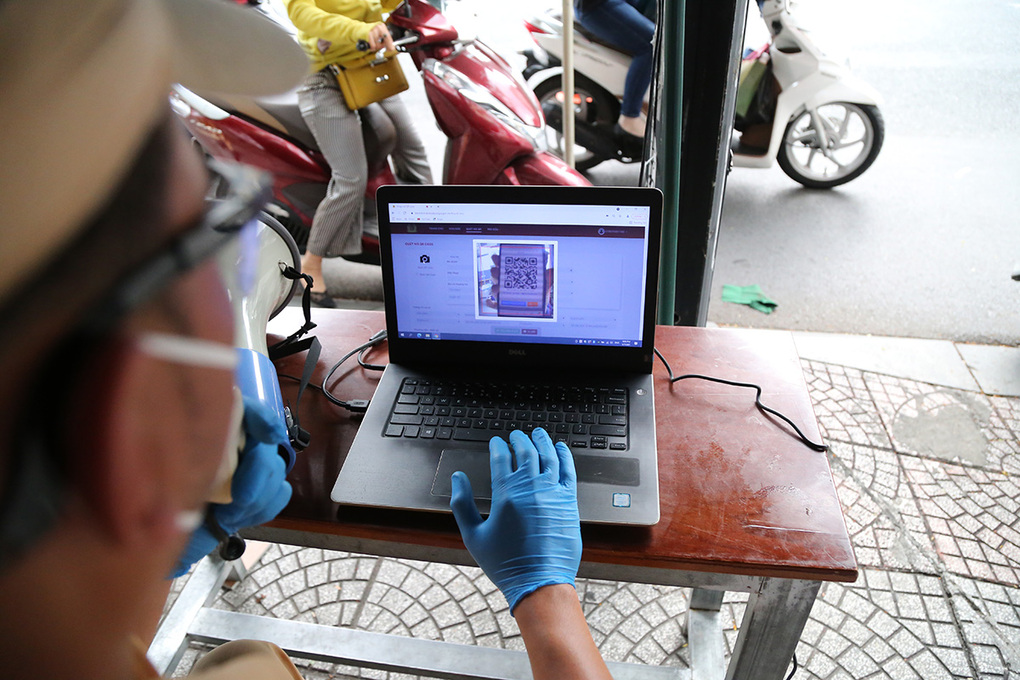 16h ngày 7/9, cảnh sát lắp hộp đựng camera trên giá đỡ cao hơn một mét trước chốt kiểm soát dịch trên đường Lê Văn Duyệt, phường 1 (quận Bình Thạnh) bắt đầu quét mã khai báo. Từng người dân dùng điện thoại có mã QR đưa trước camera thay vì được kiểm tra bằng điện thoại của lực lượng gác chốt như trước.