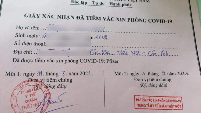 Ngày 13/9, mạng xã hội xuất hiện thông tin một bé gái tên P.K.T. (13 tuổi, ngụ phường Tân Lộc, quận Thốt Nốt, TP Cần Thơ) được tiêm 2 mũi vắc xin Pfizer vào các ngày 11/8 và 4/9, điểm tiêm là Trung tâm Y tế quận Thốt Nốt.