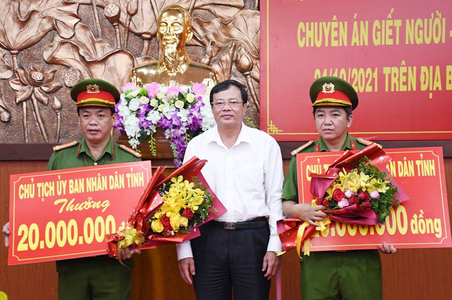Tại buổi họp báo, ông Lê Văn Hẳn, Chủ tịch UBND tỉnh Trà Vinh đã thưởng nóng cho tập thể Phòng Cảnh sát hình sự và Công an TP Trà Vinh, tặng Bằng khen cho 6 cá nhân đã có thành tích xuất sắc trong việc khám phá nhanh chuyên án.