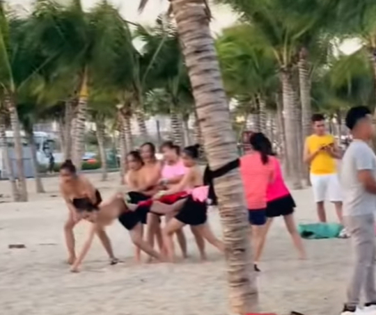 Theo đoạn clip này, trong quá trình vui chơi, nhóm du khách nữ nô đùa và thoải mái cởi áo để lộ ngực trần giữa chốn đông người ở bãi tắm. Điều đáng nói, quanh khu vực này có nhiều người gồm đàn ông, người già, trẻ nhỏ qua lại.
